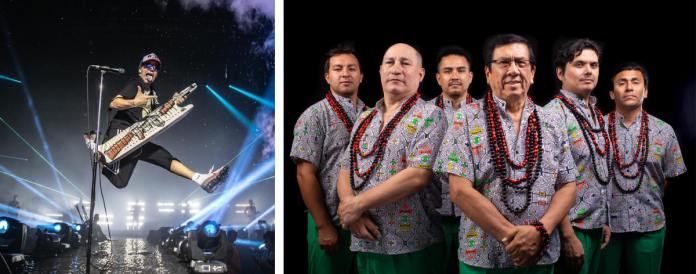 Con más de veinte años de trayectoria, DAMAS GRATIS, liderados por el carismático Pablo Lescano, han elevado la cumbia villera a un fenómeno de masas, fusionando sus raíces populares con influencias electrónicas y la energía de la cumbia sonidera mexicana. En su ADN musical laten también los ecos de LOS MIRLOS, la banda peruana que desde los años 70 ha forjado un sonido hipnótico y reconocible, marcado por guitarras reverberadas y un pulso psicodélico que les ha ganado estatus de culto en todo el mundo.