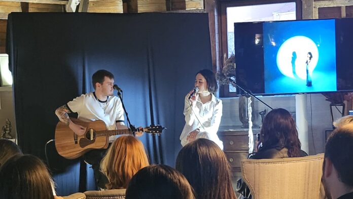 La tarde comenzó con un picoteo distendido que ya anticipaba el tono del encuentro: cercano, cálido, casi doméstico. No era un showcase al uso, sino un mini concierto acústico privado, pensado para disfrutar de las canciones de manera íntima, sin artificios y con la artista a apenas unos pasos. Ese formato le sienta especialmente bien a Yarea, cuya música —incluso en sus versiones de estudio— parece pedir madera, aire y silencio alrededor.